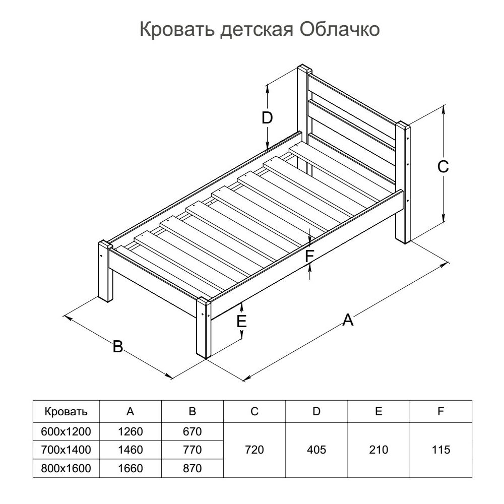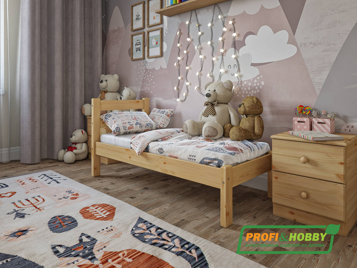 Кровать детская Profi&Hobby серии Облачко изготовлена из сосны без покраски, имеет размеры 700х1400 мм. Поставляется в разобранном виде.