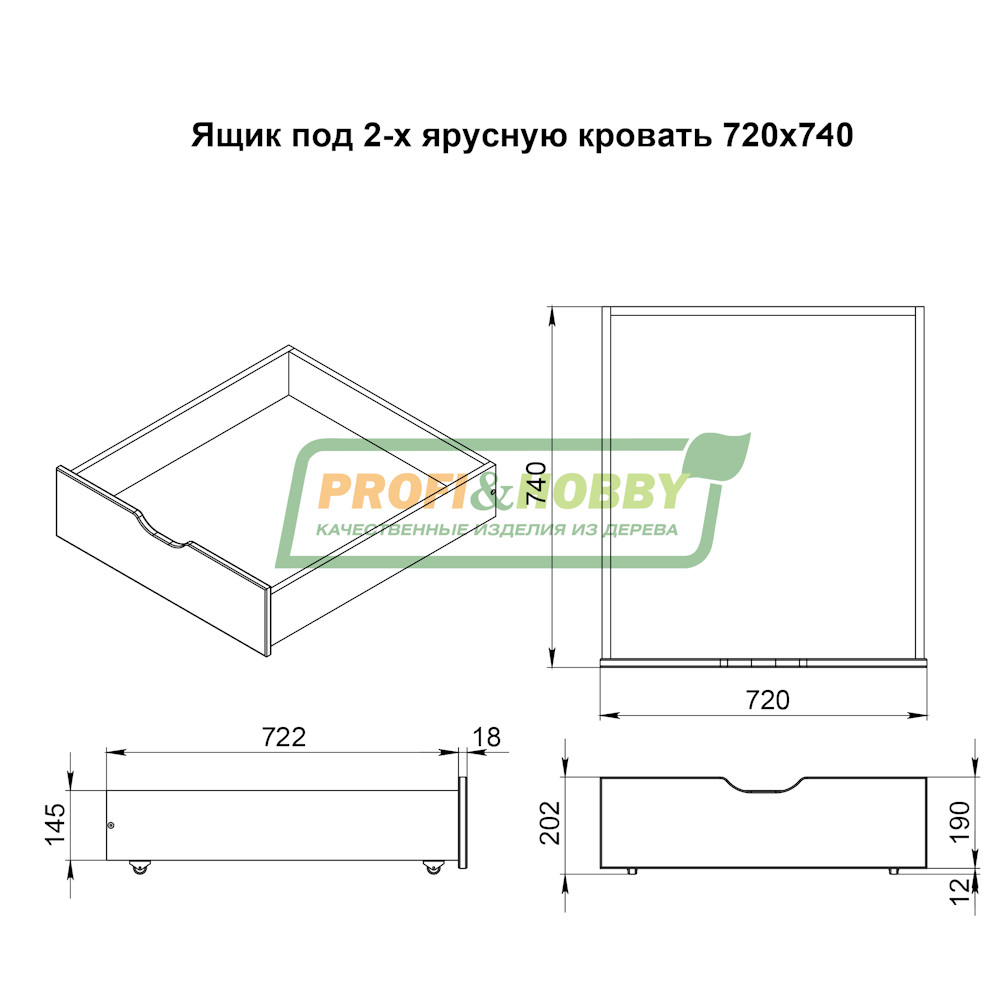 Кровать детская двухъярусная Profi&Hobby с подкроватными ящиками. Имеет размеры 900х2000 мм. Изготовлена из сосны. Поверхность изделия отшлифована и покрыта бесцветным акриловым лаком. Поставляется в разобранном виде.