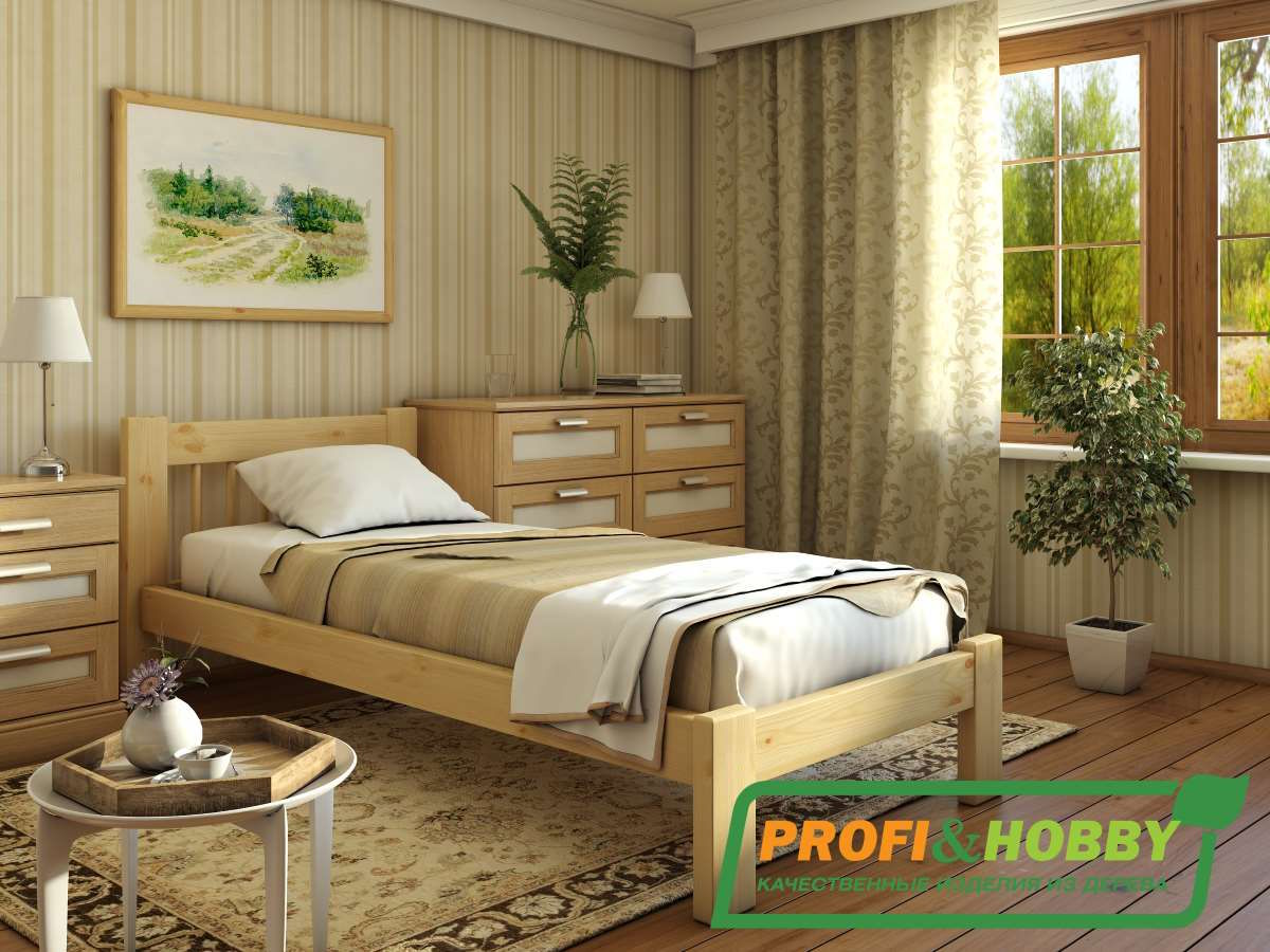 Кровать односпальная Profi&Hobby серии Дачная изготовлена из массива архангельской сосны без покраски. Поставляется в разобранном виде.