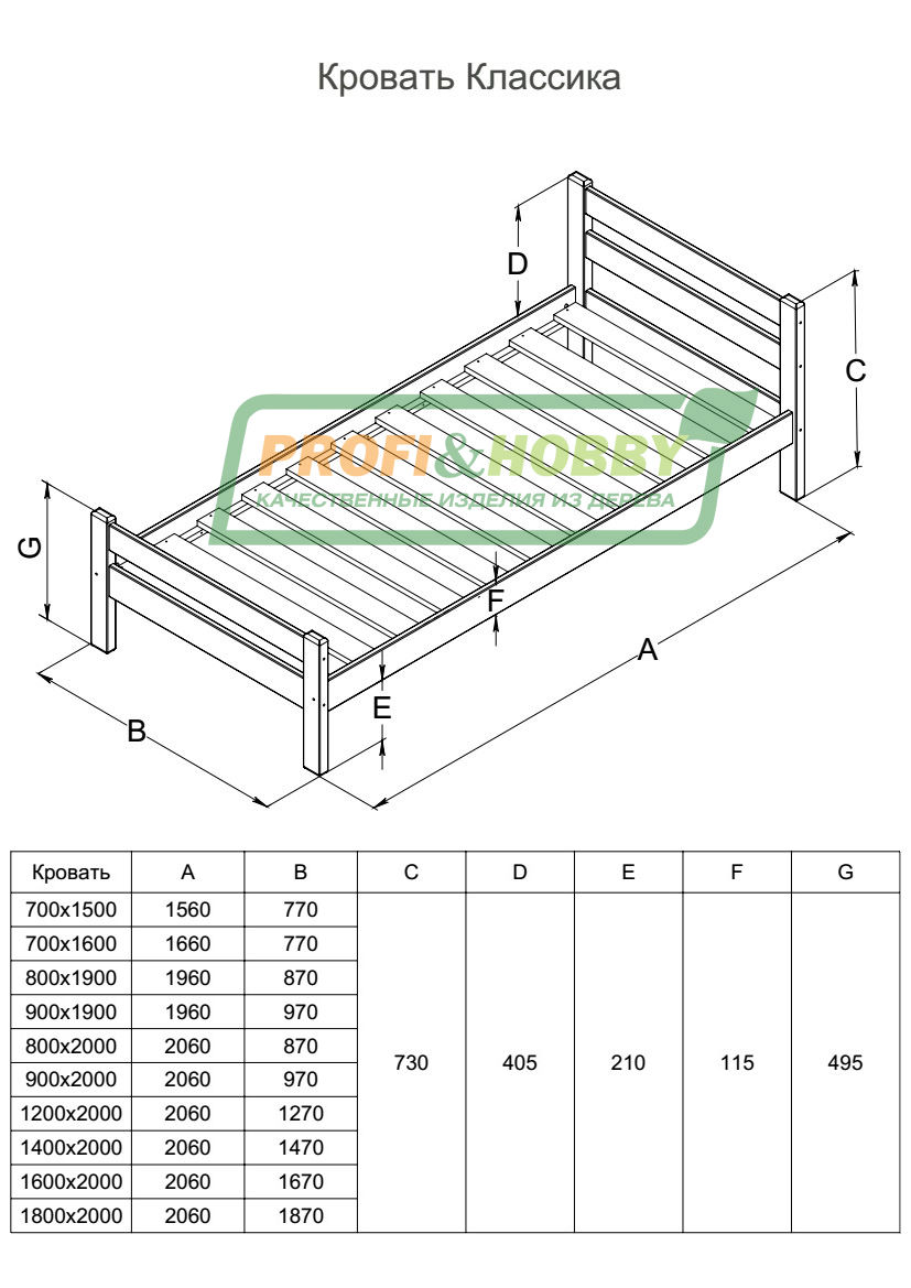 Кровать двуспальная Profi&Hobby серии Классика изготовлена из массива архангельской сосны.