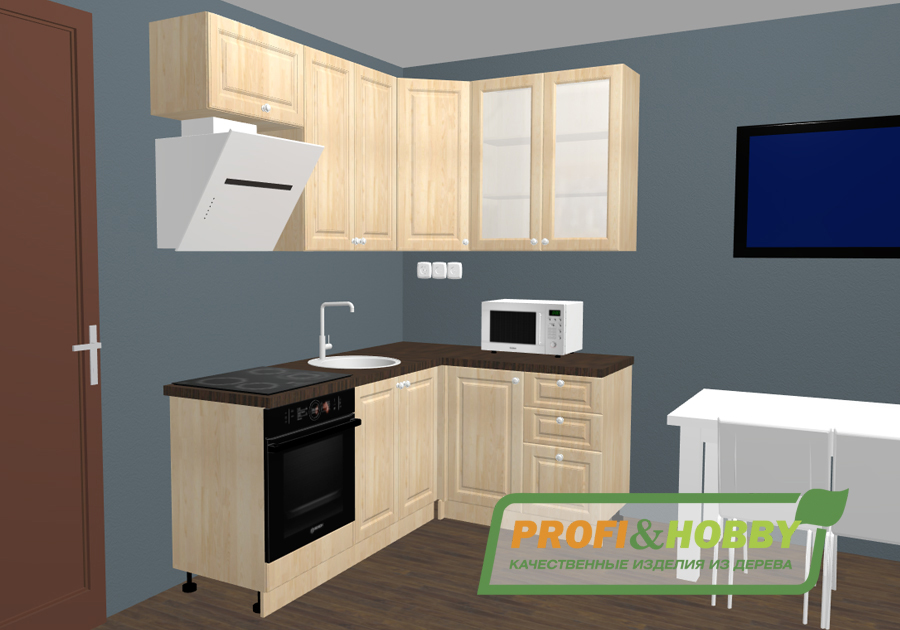 • Кухонные модули из сосны без тонировки (без отделки или прозрачный лак)
