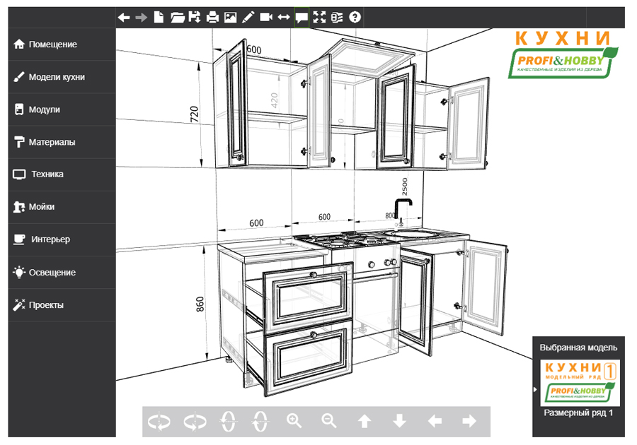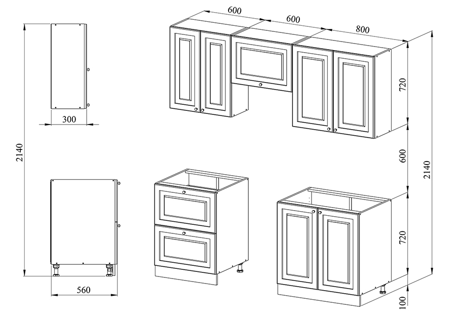 Благодаря модульной системе такая кухня может быть собрана зеркально. В стандартной комплектации нижние тумбы оснащены регулируемыми ножками высотой 100 мм и цоколем из массива сосны 95 мм.