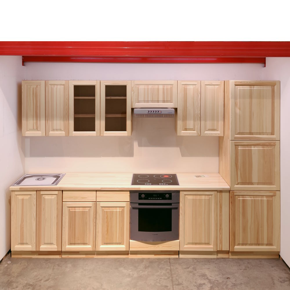 - Кухонные модули из сосны без тонировки (без отделки или прозрачный лак)