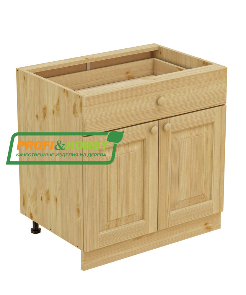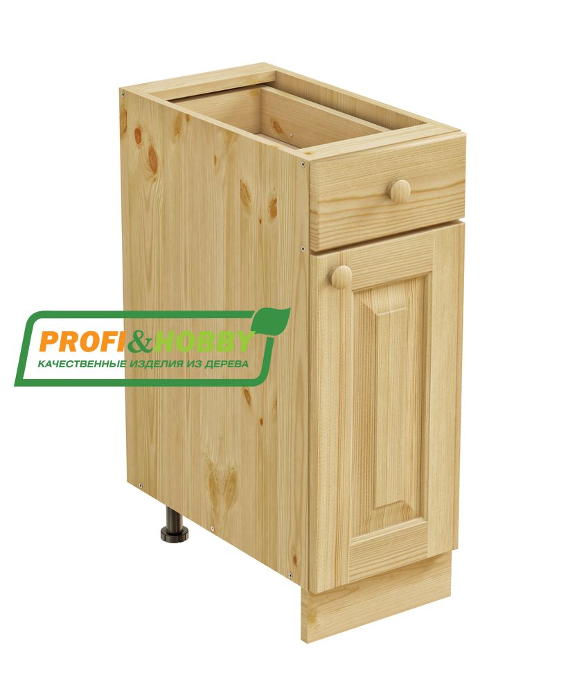 - Корпус, цоколь и полка (1 шт) из массива сосны высшего качества без дефектов и чёрных сучков толщиной 18 мм. Для производства используется мебельный щит категории А цельноламельный и Экстра сращенный.