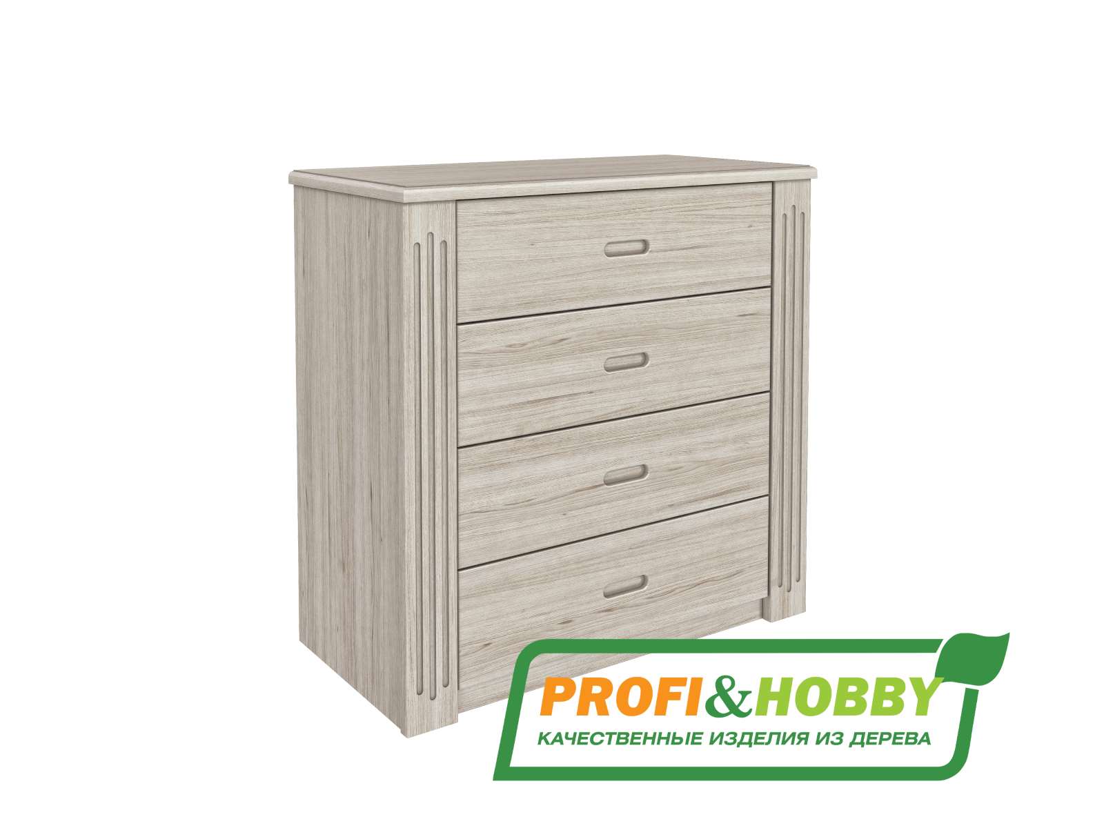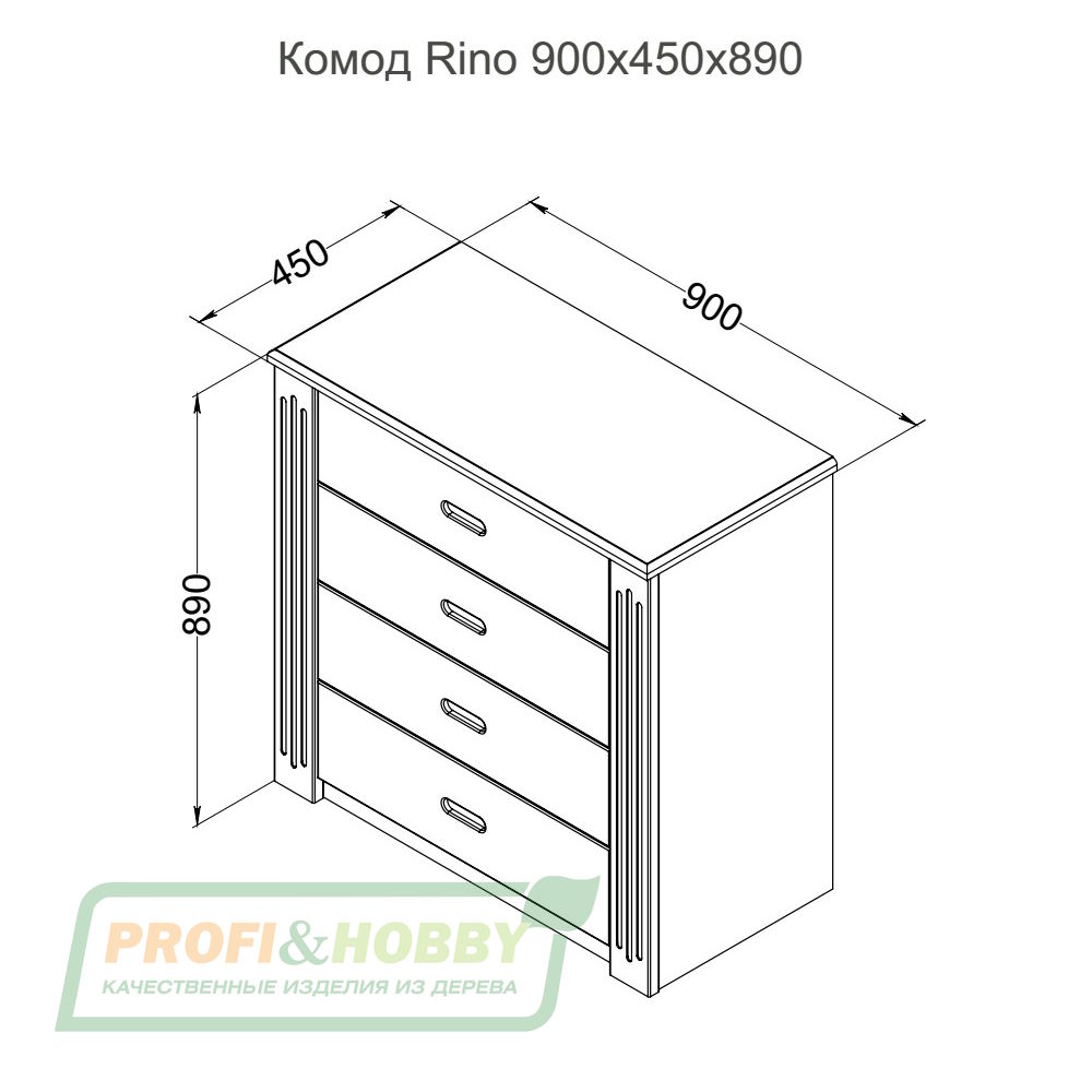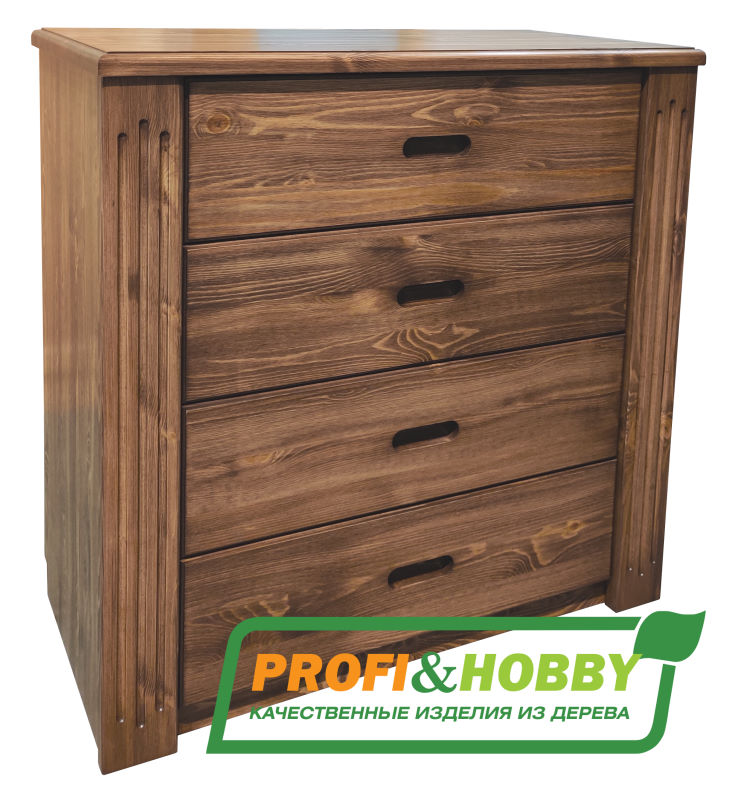 Комод с четырьмя ящиками Profi&Hobby серии Rino изготовлен из дуба, окрашен маслом OSMO (Германия) в цвете “Сонома”. Поставляется в разобранном виде.