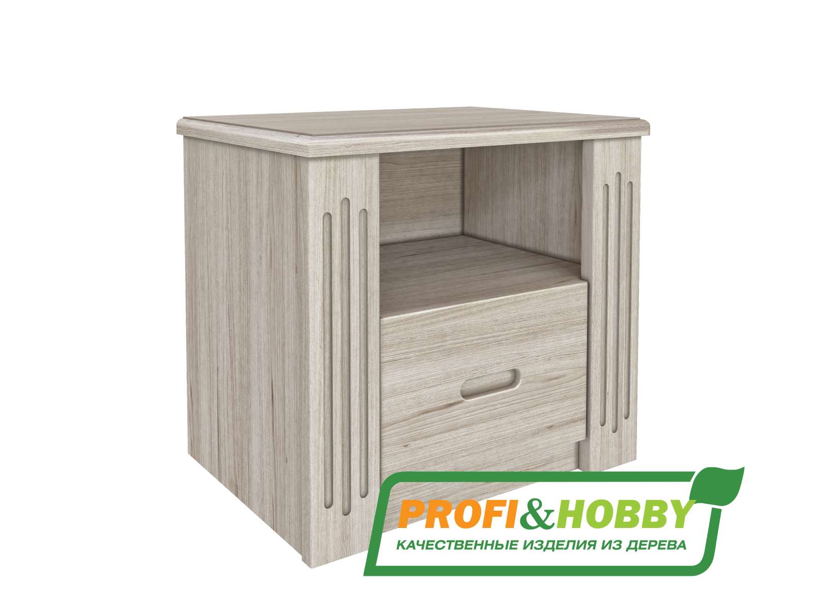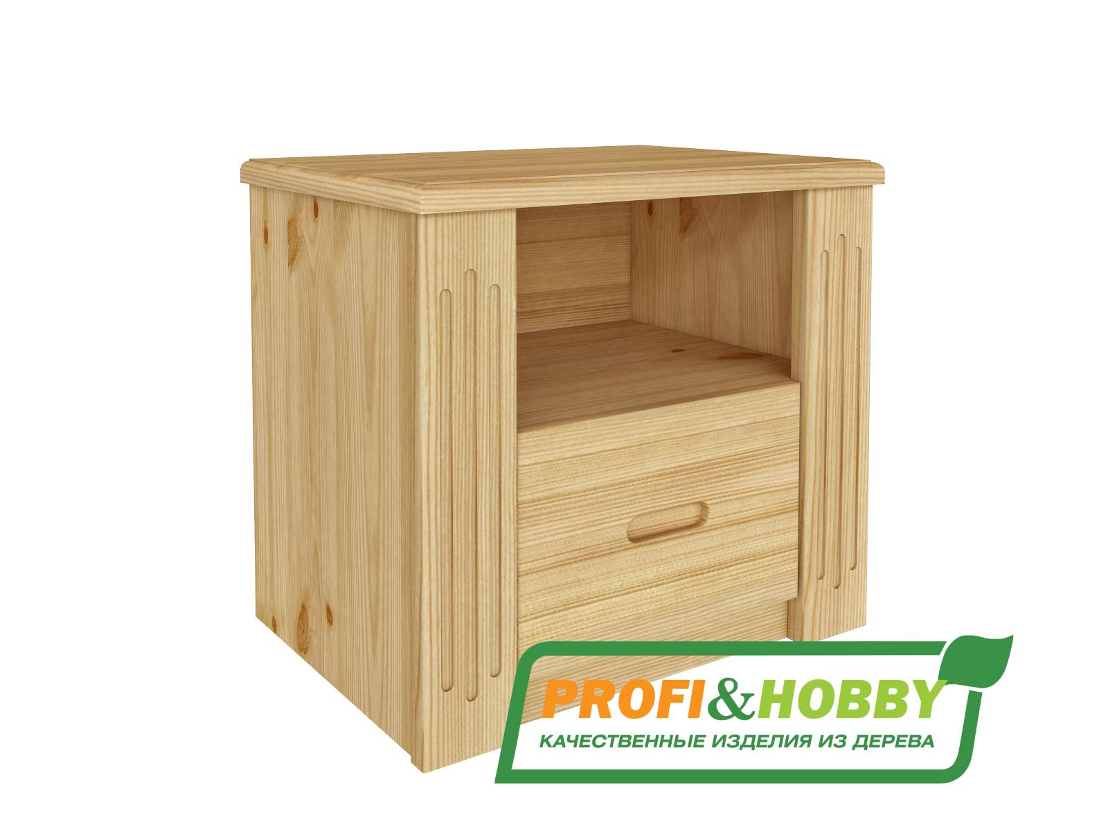 Прикроватная тумба с одним ящиком Profi&Hobby серии Pino Rino изготовлена из сосны без покраски. Размеры тумбы (ШхГхВ) 550х400х500 мм. Поставляется в разобранном виде.