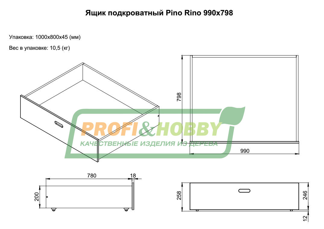 Внимание! Данные выкатные ящики подходят для кроватей Profi&Hobby® серии «Pino Rino» с размером спального места 80х200 см, 90х200 см, 160х200 см, 180х200 см и 200х200 см.